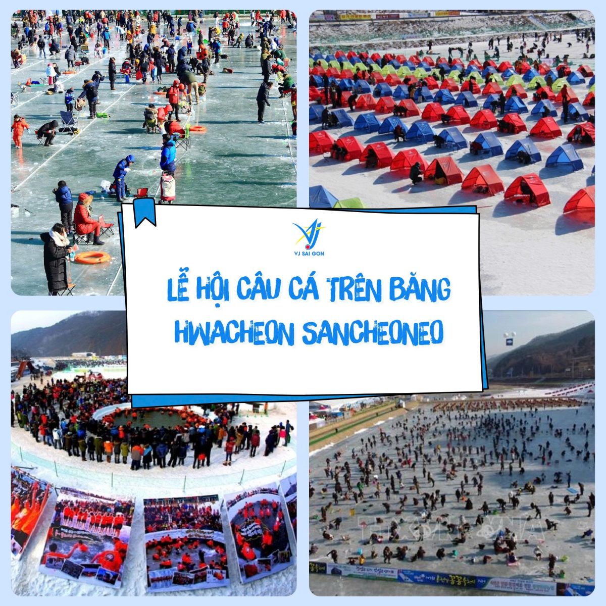 Lễ hội câu cá Hwacheon Sancheoneo là một trong ba lễ hội mùa đông lớn nhất Hàn Quốc. Đến đây, bạn có thể thử khoan băng, câu cá dưới mặt hồ đóng băng và thưởng thức món cá hồi nướng ngay tại chỗ.