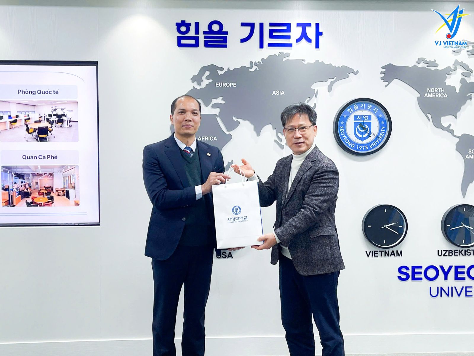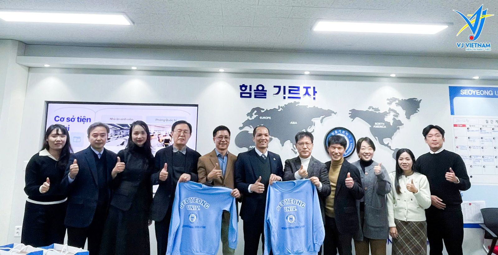 Trong khuôn khổ chuyến công tác tại Hàn Quốc, chiều ngày 22/12, đại diện Global – VJ Vietnam đã có buổi làm việc trực tiếp với Trường Đại học Seoyeong. Buổi gặp gỡ nhằm tăng cường kết nối giữa hai đơn vị, đồng thời cập nhật thông tin thực tế về đào tạo, học tập và sinh hoạt dành cho sinh viên quốc tế tại Hàn Quốc.