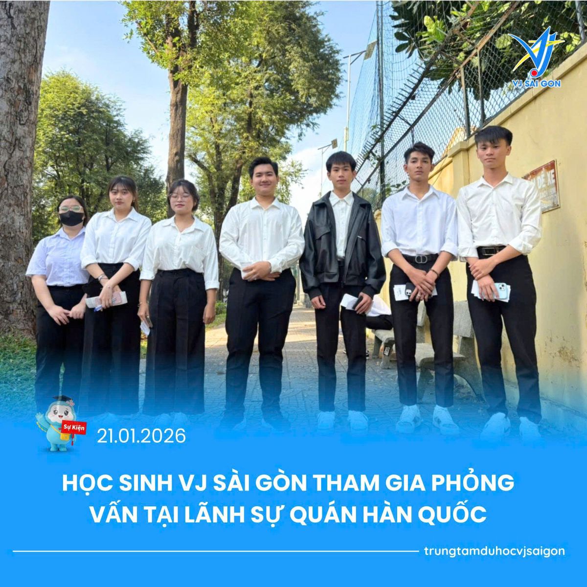 Sáng ngày 21/01/2026, các bạn học sinh Global – VJ Vietnam Sài Gòn đã có mặt tại Lãnh sự quán Hàn Quốc để tham gia buổi phỏng vấn xin visa du học. Đây là một cột mốc quan trọng, đánh dấu chặng cuối trong quá trình hoàn thiện hồ sơ và chuẩn bị cho hành trình học tập tại Hàn Quốc.