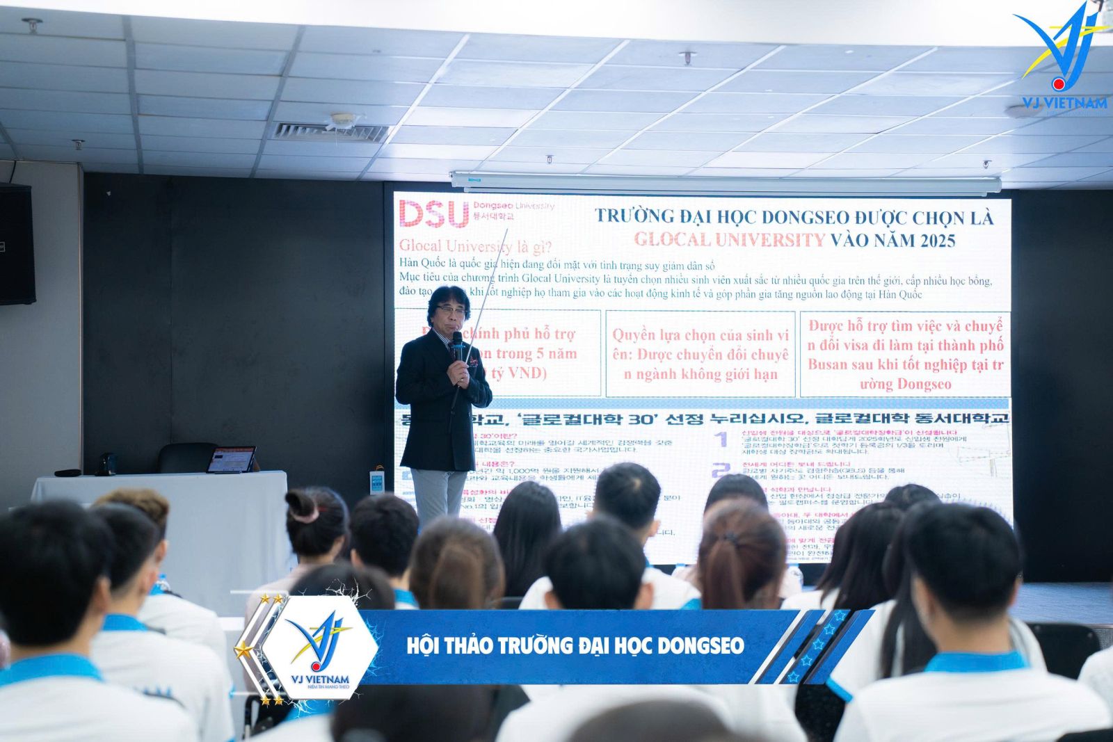 Ngày 11 tháng 11 năm 2025, Global – VJ Vietnam đã phối hợp cùng Trường Đại học Dongseo (Dongseo University) tổ chức thành công Hội thảo Tư vấn Tuyển sinh du học Hàn Quốc tại cơ sở Global – VJ Vietnam.